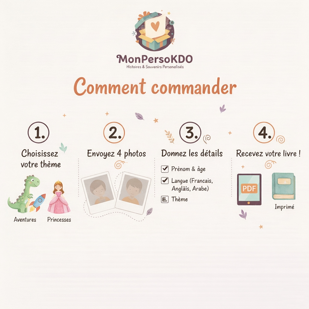 Chaque histoire est unique et créée à partir du prénom et des photos de votre enfant, selon le thème de son choix :